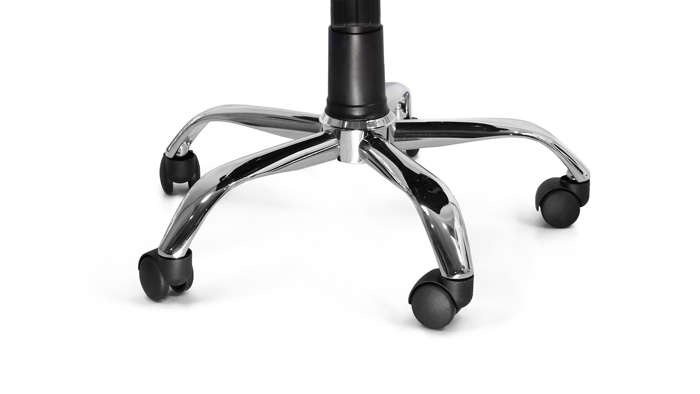 Con las mismas ventajas del modelo estándar —como respaldo de malla, mecanismo reclinable y brazos ergonómicos—, esta versión incorpora una base cromada que le da una presencia más elegante.